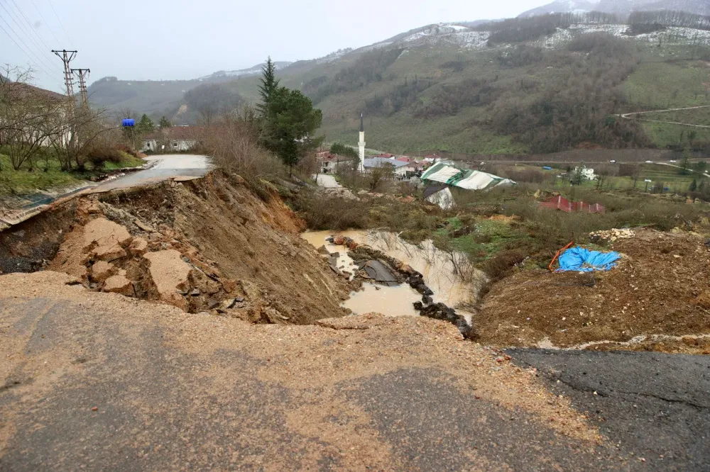 "3-4 gündür hiç durmadan devam eden yağmur ve kar nedeniyle heyelanlar meydana geldi. Burası bentonit yataklarının da olduğu killi bir arazi yapısına sahip. 30 metre kayma meydana geldi. Bütün halkımıza geçmiş olsun dileklerimizi iletiyoruz. Bütün tedbirleri aldık ama daha köklü tedbirler için de çalışmalar yapacağız. Durumu AFAD'a da bildirdik. Can kaybı olmaması en büyük tesellimiz. Burası tamamen araç ve yaya trafiğine kapatıldı. İnşallah üstesinden geleceğiz. Yağmur yağışının durmasıyla alanı tekrar etüt edeceğiz. Tekrar geçmiş olsun dileklerimi iletiyorum."