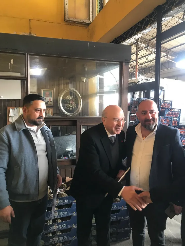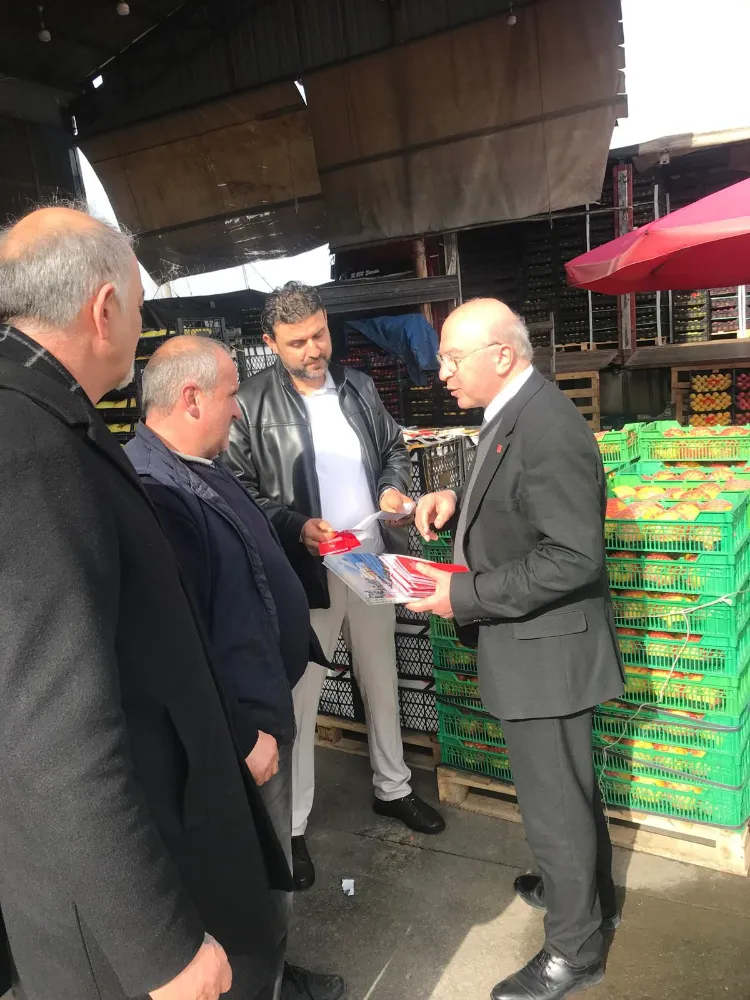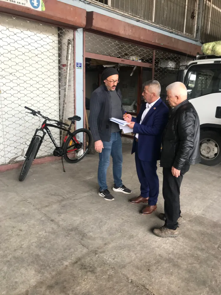 Cumhuriyet Halk Partisi (CHP) Ünye İlçe Başkanı İsa Maral ve yönetim kurulu üyeleri, Ünye Yaş Sebze ve Meyve Hali'ni ziyaret etti.