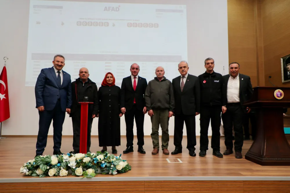 Tören, noter huzurunda gerçekleştirilen kura çekimi sonrası hak sahibi afetzedelere anahtar teslimi ile sona erdi.
