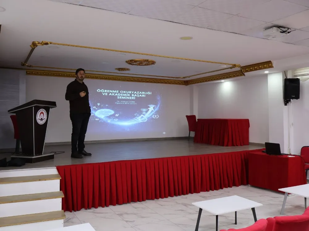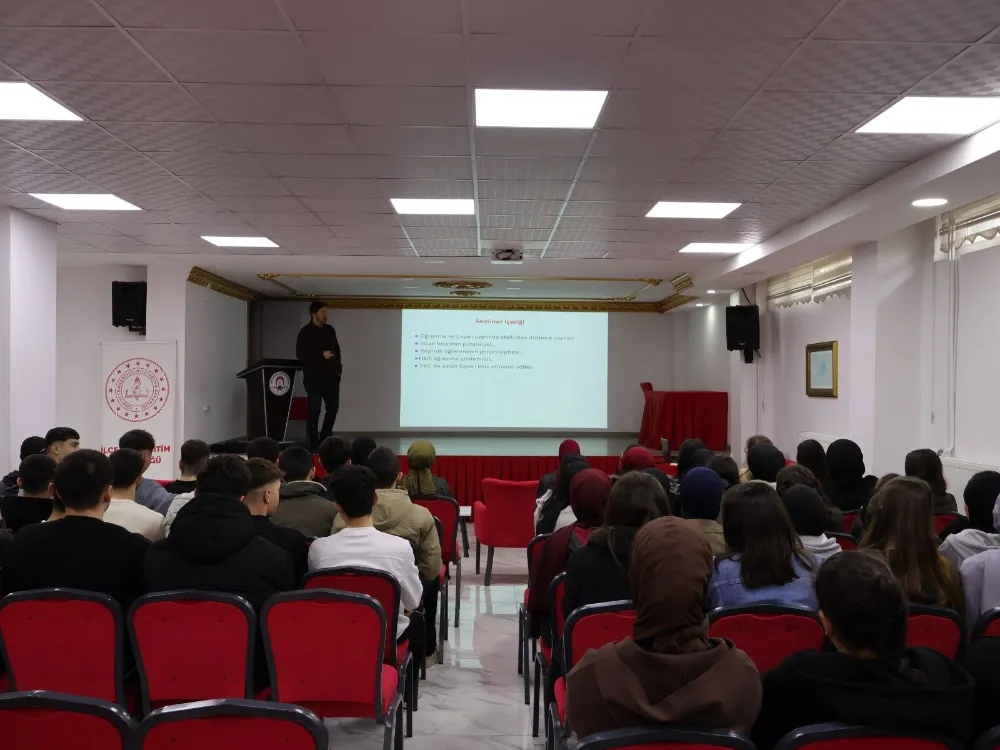 Öğrencilerin öğrenme motivasyonunu artırmak, öğrenme süreçlerini desteklemek ve akademik başarılarını yükseltmek amacıyla planlanan seminerde, öğrenme okuryazarlığının geliştirilmesi ile Ölçme, Seçme ve Yerleştirme Merkezi (ÖSYM) tarafından gerçekleştirilen Yükseköğretim Kurumları Sınavı'nda (YKS) başarıyı artırmaya yönelik strateji ve yöntemler ele alındı.