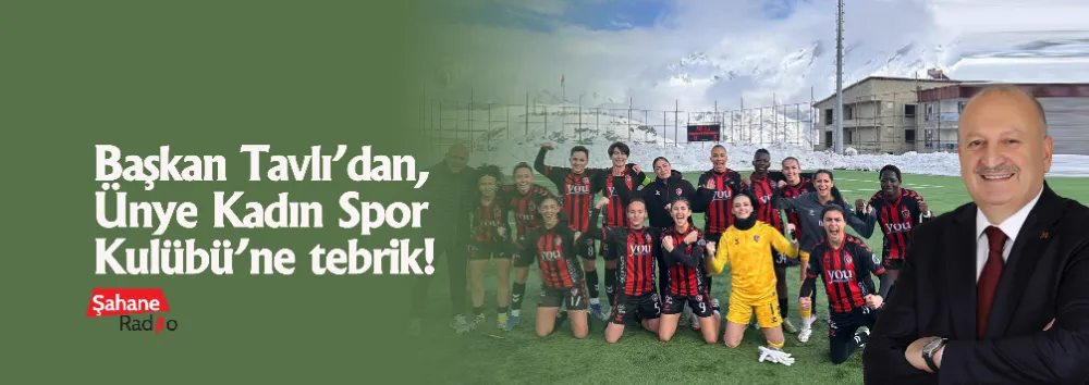 Başkan Tavlı mesajında, "Deplasmanda Hakkarigücü Spor Kulübü’nü 2-0 mağlup eden Turkcell Kadınlar Süper Lig temsilcimiz Ünye Kadın Spor Kulübümüzü tebrik ediyor, başarılarının devamını diliyorum." ifadelerine yer verdi.