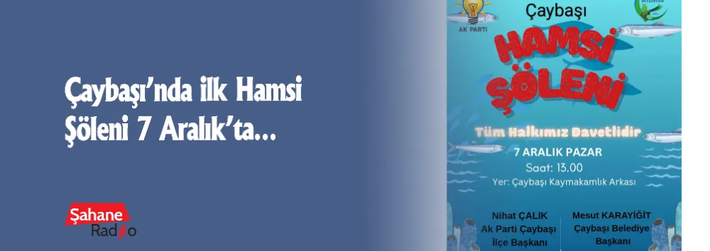 Çaybaşı Belediyesi ile AK Parti İlçe Teşkilatı iş birliğiyle bu yıl ilki düzenlenecek Hamsi Şöleni, 7 Aralık Pazar günü Kaymakamlık arkasındaki meydanda yapılacak. Belediye Başkanı Mesut Karayiğit, vatandaşları etkinliğe davet etti.