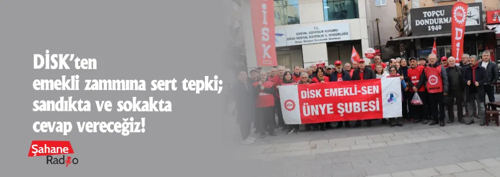 DİSK Dev Emekliler Sendikası Ünye Şubesi, emeklilere yapılan artışın yetersiz olduğunu belirterek, “Sadaka değil, insanca yaşam istiyoruz. Bizi açlığa mahkûm edenlere sandıkta ve sokakta gereken cevabı vereceğiz” açıklamasında bulundu.