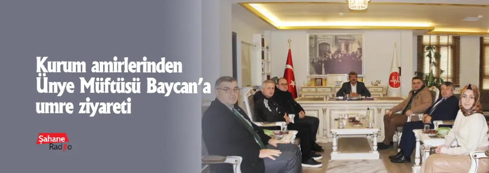 Ünye Müftülüğü’nden yapılan açıklamada, “İlçemiz kurum amirleri ve yöneticilerden oluşan bir heyet, umre görevinden dönen İlçe Müftümüz Ali Fuat Baycan’ı ziyaret ederek hayırlı olsun dileklerini iletmiştir.” ifadelerine yer verildi.