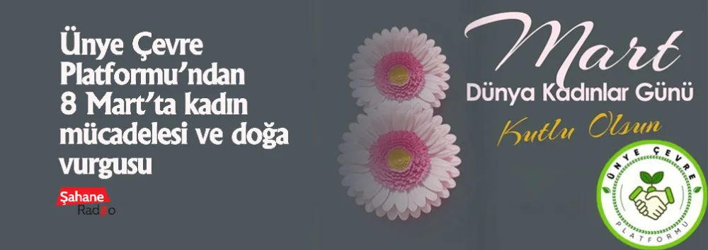 Ünye Çevre Platformu, 8 Mart Dünya Emekçi Kadınlar Günü dolayısıyla bir basın açıklaması yayımladı. Açıklamada kadınların eşitlik, özgürlük ve güvenli yaşam mücadelesine dikkat çekilirken, doğa mücadelesi ile kadın mücadelesinin aynı yaşam mücadelesinin parçası olduğu vurgulandı.