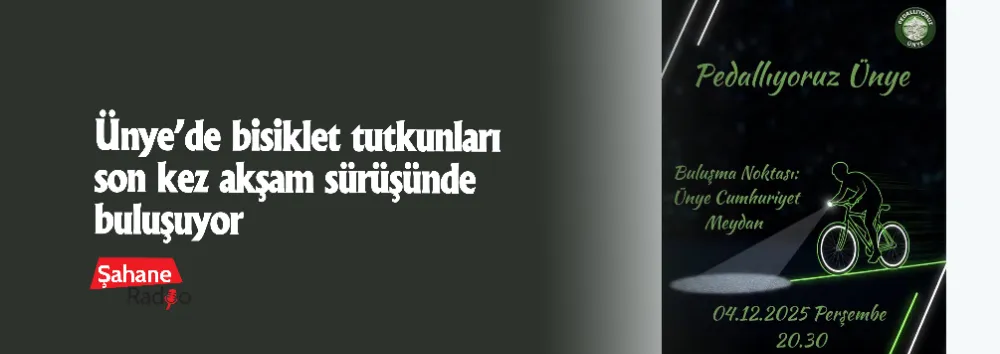 Pedallıyoruz Ünye grubu, sezonun son akşam sürüşü için hazırlıklarını tamamladı. 4 Aralık 2025 Perşembe akşamı saat 20.30’da başlayacak etkinlikte katılımcılar, Ünye Cumhuriyet Meydanı’nda toplandıktan sonra Batıpark güzergâhında keyifli bir rota takip edecek.