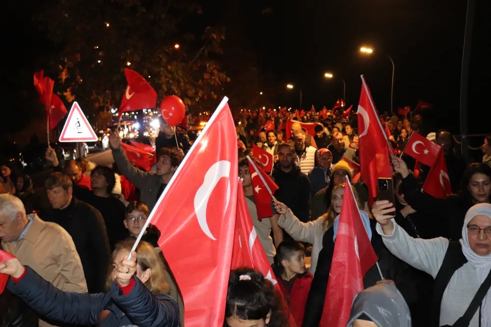 Meşaleler, Türk bayrakları ve marşlarla ilerleyen kalabalık, Cumhuriyet'in 102. yılını coşkuyla kutladı.