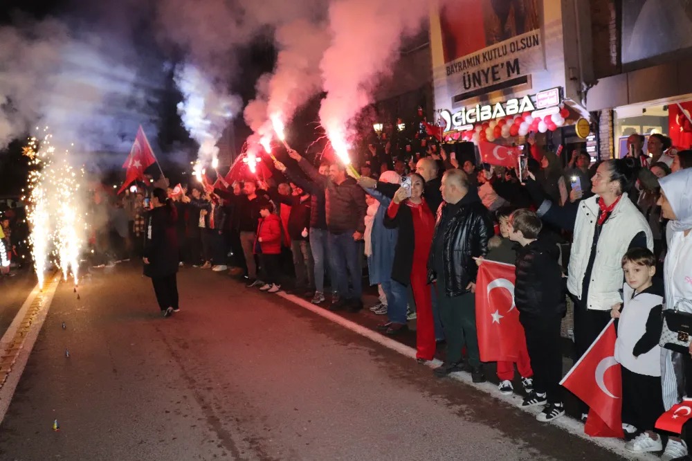 Ünye'de Cumhuriyet'in 102. yılı, "Yaşasın Cumhuriyet" sloganları ve meşalelerle aydınlanan gecede, unutulmaz bir atmosferle kutlandı.