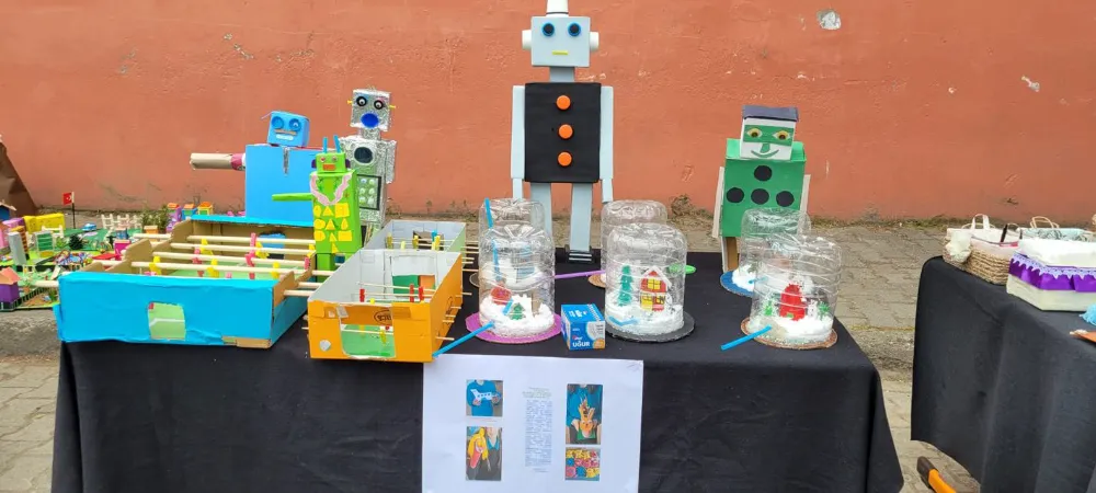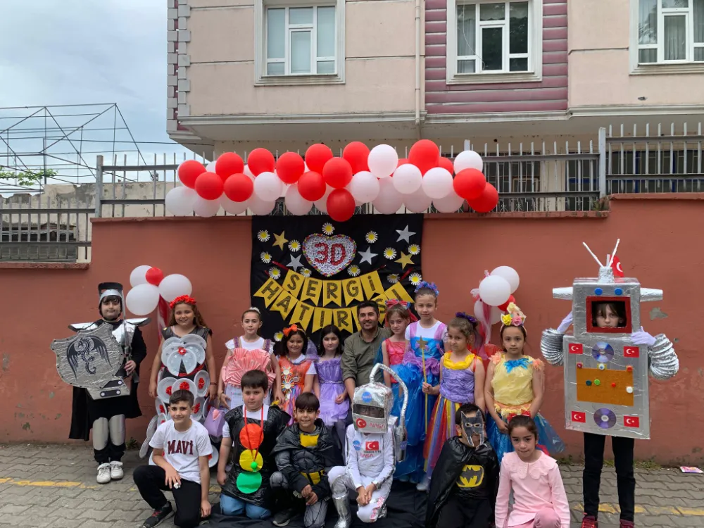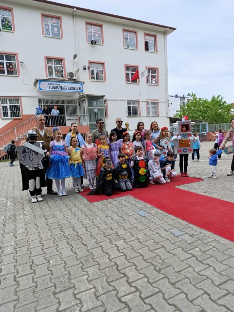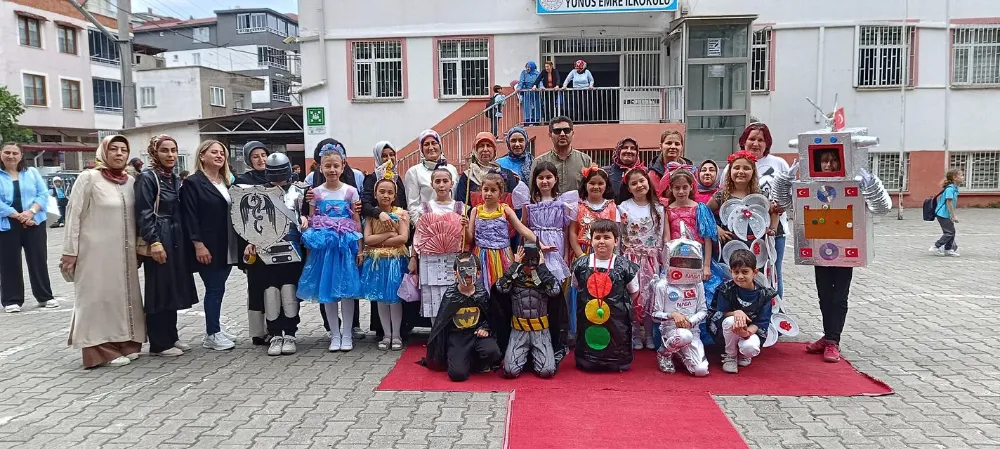 Ünye Yunus Emre İlkokulu 3-D sınıfı öğrencileri, öğretmenleri Harun Bolat rehberliğinde yıl boyunca hazırladıkları geri dönüşüm projelerini okul bahçesinde sergiledi.