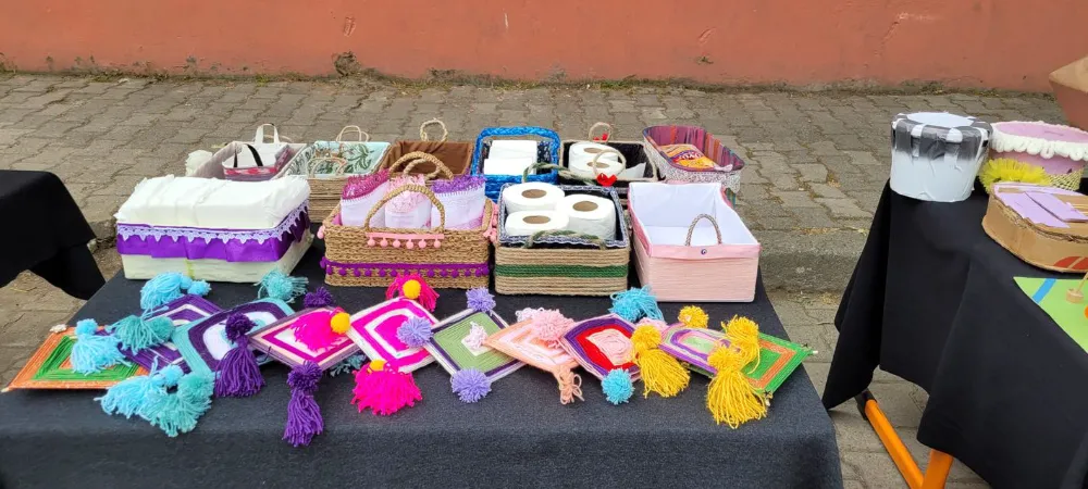 Milli Eğitim Bakanlığı'nın "Enerji Dostu, Mavi Yeşil Okulum Projesi" kapsamında gerçekleştirilen sergide, öğrenciler kendi elleriyle hazırladıkları oyuncakları, dekoratif ürünleri ve kıyafetleri sergileyerek çevreye duyarlılık mesajı verdi.
