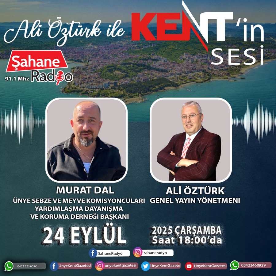 Her hafta Çarşamba günü saat 18.00'da yayınlanan programın ilk konuğu, 24 Eylül Çarşamba akşamı Ünye Sebze ve Meyve Komisyoncuları Derneği Başkanı Murat Dal olacak. Hal esnafının sorunları ve Ünye'deki güncel gelişmeler masaya yatırılacak.